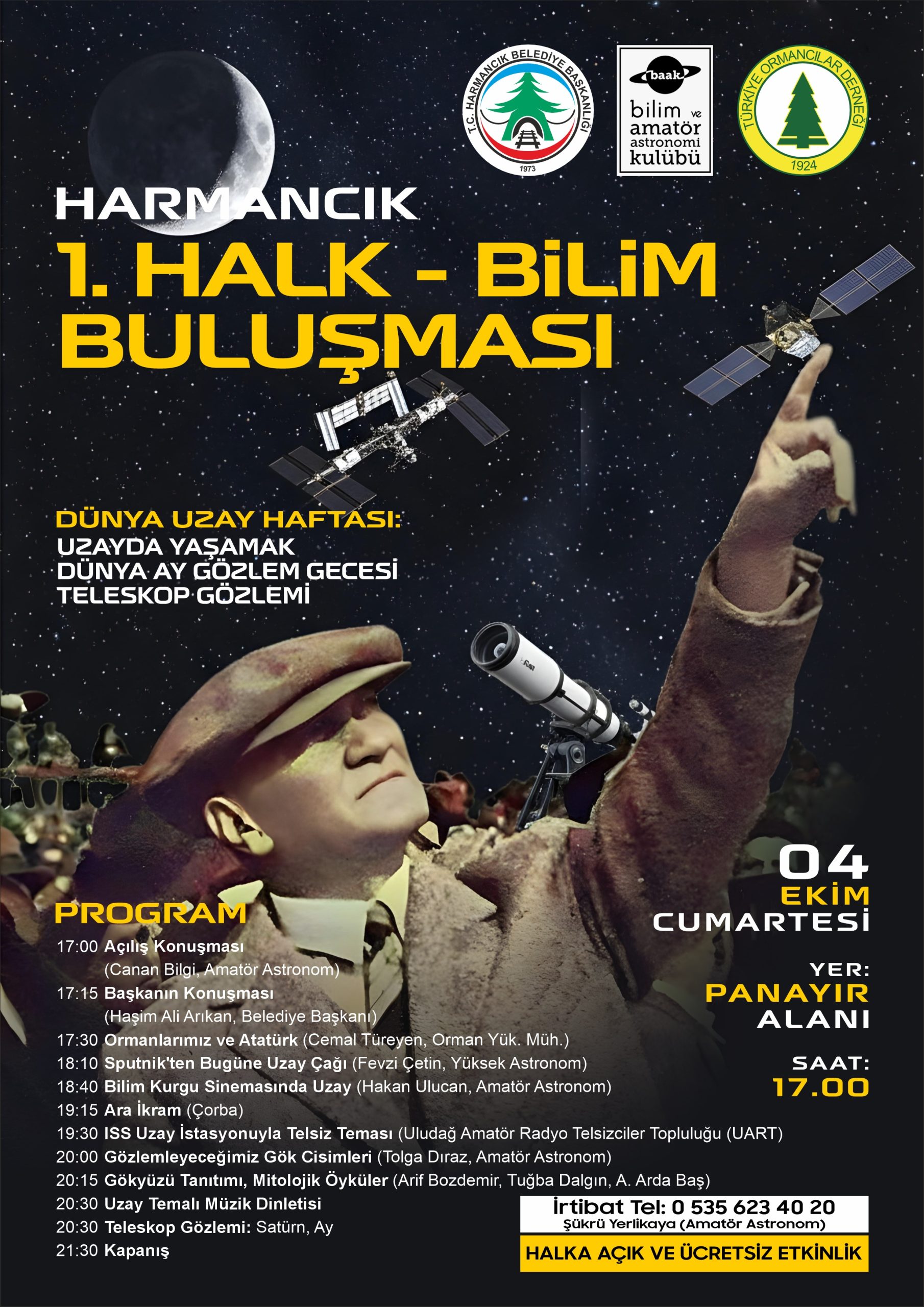 Harmancık Belediyesi, Bilim ve Amatör Astronomi Kulübü (BAAK) ve Türkiye Ormancılar Derneği (TOD) işbirliğiyle düzenlenen Harmancık 1. Halk – Bilim Buluşması’na tüm halkımız davetlidir.Bu özel etkinlik, Dünya Uzay Haftası ve