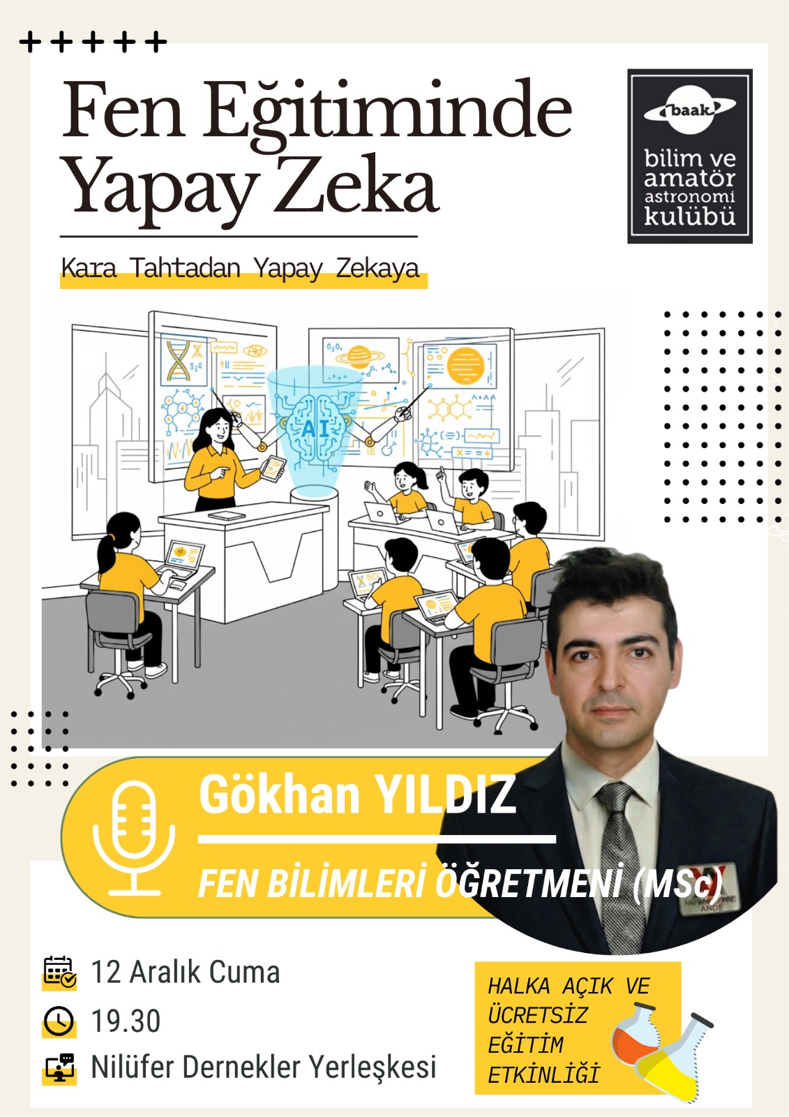 Ülkemizin en iyi el yapımı teleskop yapımcılarından ve Teleskophane’nin sahibi Atila TINKILIÇ, Halkın Bilim Kürsüsü’nde sizlerle buluşuyor! 14 Kasım 2025 Cuma akşamı gerçekleşecek bu özel konferansta, teleskopların aydınlık dünyasını ve