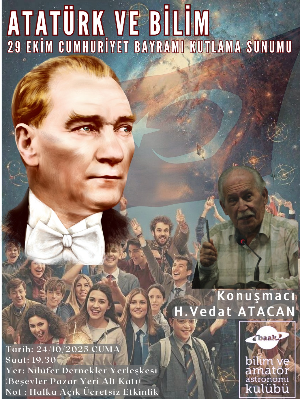 Cumhuriyet, egemenliği dogmalardan alıp akla ve bilime dayandırarak modern bir toplumun temellerini atmıştır. 24 Ekim 2025 Cuma akşamı Halkın Bilim Kürsüsü’nde Cumhuriyet Haftası’nda kurucu önderin mirasını anıyoruz. BAAK Yönetimi’nden araştırmacı