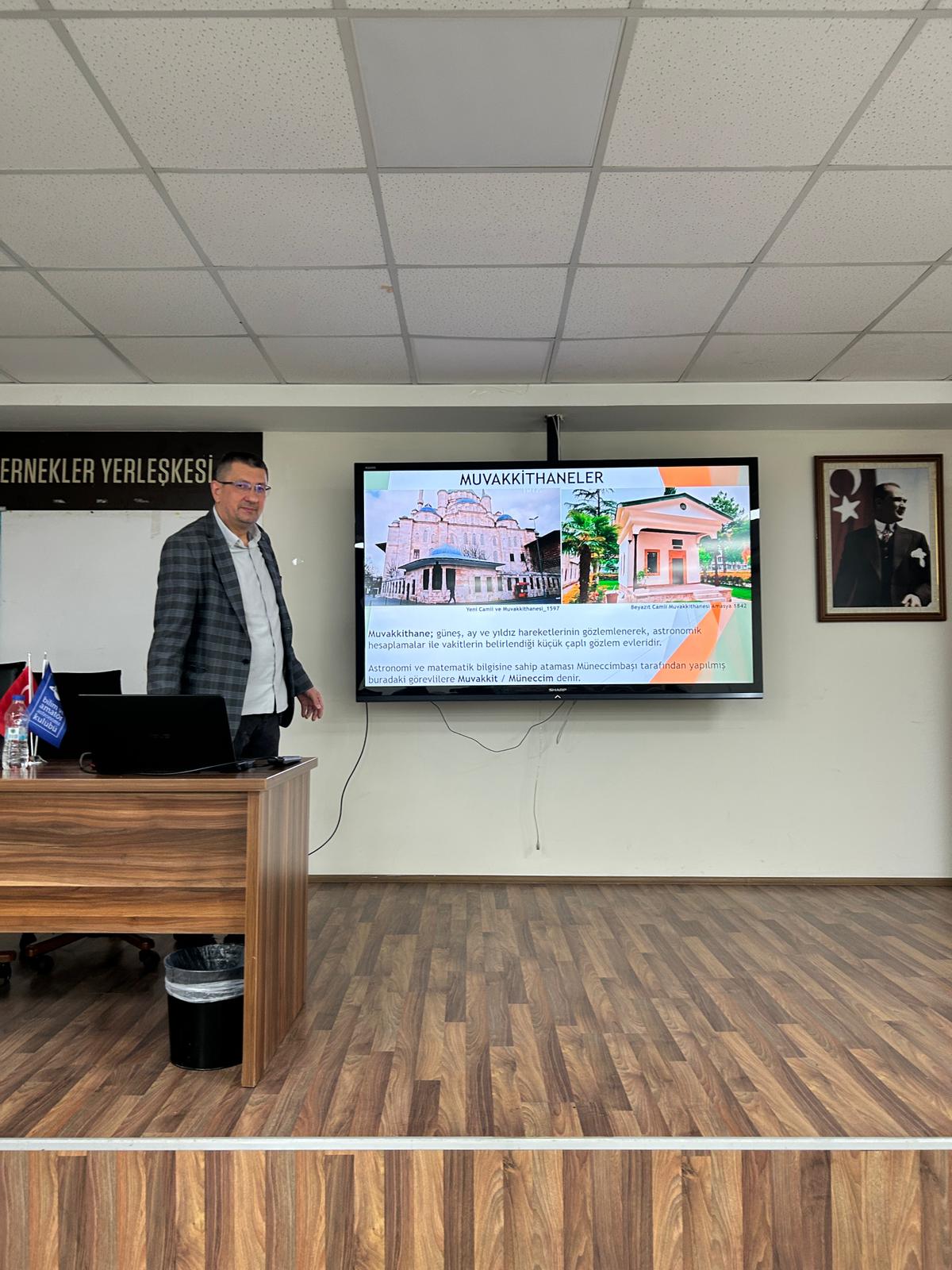 Halkın Bilim Kürsüsü’nde bu hafta, topraklarımızın bilimsel mirasına ışık tutan özel bir akşamı geride bıraktık. Değerli konuşmacımız Şükrü Yerlikaya, “Muvakkithaneler” başlıklı sunumuyla bizleri Osmanlı coğrafyasının zamanın tayin edildiği merkezlerine götürdü. Sunumda, camilerin hemen yanında konumlanan muvakkithanelerin bir anlamda astronomi, matematik ve hassas ölçüm aletlerinin merkezi olduğunu; buralarda çalışan muvakkitlerin 15-16 yy civarında en ile teknik bilgilere sahip olduklarını öğrendik. Soru cevap kısmında ise, İstanbul Rasathanesi’nin bir padişah fermanıyla yıkılmasının, coğrafyamızın bilim tarihindeki o kritik “geriye doğru kırılma” anı üzerindeki etkilerini tartışıldı. Etkinliğimizi zenginleştiren bir diğer önemli isim, antik el sanatlarının ülkemizdeki nadir temsilcilerinden, usturlap replika ustası Cebrail Çukurkaya idi. Geçmişin zaman tayin aletlerini bugün replikaların yapan ustanın katılımı, katkıları da bilgilerimiz derinleştir. Kendisine çok teşekkür ediyoruz. Diğer yandan konuşmacımız Şükrü Yerlikaya , katılımları ve yorumlarıyla akşamımızı aydınlatan tüm bilim dostlarına teşekkür ederiz.
