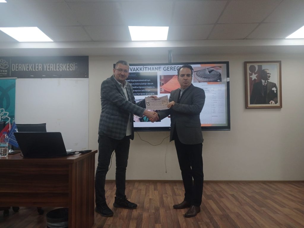 Halkın Bilim Kürsüsü’nde bu hafta, topraklarımızın bilimsel mirasına ışık tutan özel bir akşamı geride bıraktık. Değerli konuşmacımız Şükrü Yerlikaya, “Muvakkithaneler” başlıklı sunumuyla bizleri Osmanlı coğrafyasının zamanın tayin edildiği merkezlerine götürdü. Sunumda, camilerin hemen yanında konumlanan muvakkithanelerin bir anlamda astronomi, matematik ve hassas ölçüm aletlerinin merkezi olduğunu; buralarda çalışan muvakkitlerin 15-16 yy civarında en ile teknik bilgilere sahip olduklarını öğrendik. Soru cevap kısmında ise, İstanbul Rasathanesi’nin bir padişah fermanıyla yıkılmasının, coğrafyamızın bilim tarihindeki o kritik “geriye doğru kırılma” anı üzerindeki etkilerini tartışıldı. Etkinliğimizi zenginleştiren bir diğer önemli isim, antik el sanatlarının ülkemizdeki nadir temsilcilerinden, usturlap replika ustası Cebrail Çukurkaya idi. Geçmişin zaman tayin aletlerini bugün replikaların yapan ustanın katılımı, katkıları da bilgilerimiz derinleştir. Kendisine çok teşekkür ediyoruz. Diğer yandan konuşmacımız Şükrü Yerlikaya , katılımları ve yorumlarıyla akşamımızı aydınlatan tüm bilim dostlarına teşekkür ederiz.